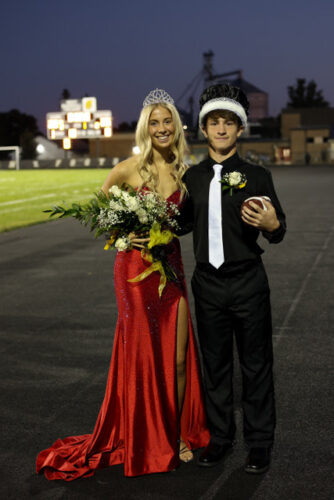 Queen Halle Jones, left, and king Kinnick Geers, right, were crowned the 2025 West Marshall Homecoming king and queen during a coronation ceremony held Thursday evening.