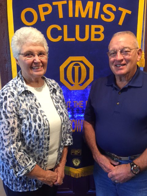 CONTRIBUTED PHOTO Morning Optimist Club member Doug Noid, right, welcomes guest speaker Rita Smith, who explained the process of the annual “Stuff the Bus” school supply give-away at a recent club meeting. Smith is one of the 54 volunteers who assist with receiving, sorting, distributing and shopping for the hundreds of backpacks full of supplies that are given to qualifying families prior to the beginning of the school year.