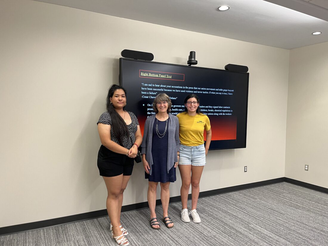 The program was Susan Fritzell who brought two students from Marshalltown High School who had won the National History Day Debate with their presentation entitled “La Huelga: The Struggle That Earned Farm Workers Rights.” Students Yessenia Alvarez Zamora and Leticia Herrera had a computer presentation telling how immigrant workers in the 1960s struggled to get workers’ rights, safety and better living conditions, and how they worked together with the grape growers to resolve issues.