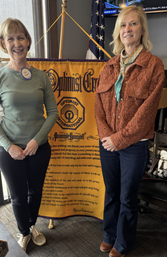 Sheila Paul, After Care Self-Sufficiency advocate with YSS, spoke to the Optimist Club of Marshalltown about her services. Paul, who has been with YSS for 30 years, provides individualized services for youth ages 17 to 23 who have aged out of, or about to age out of, foster care, the Iowa State Training School or a court-ordered detention center. The purpose of her services is to assist youth in acquiring the skills they need in order to live independently. Paul, pictured at right, recites the Optimist Creed led by Optimist Club President Pat Peden, left. The Optimist Club, whose motto is “Friend of Youth,” meets Thursday noons at Legends American Grill.