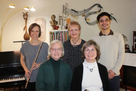 The Tuesday Musical Club met March 10 at the home of Christine Norman Hall. Performers were (left to right) Caitlin Downing, Julianne Paustian, Colette Benge, Norman Hall and Hudson Lourenco-Feld (guest accompanist). Refreshments were served by Marshal Bristley and Norman Hall.