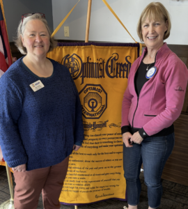 Shari Reilly, Central Iowa RSVP (Retired and Senior Volunteer Program) Volunteer Coordinator, spoke to the Optimist Club of Marshalltown at its April 9 meeting at Legends. Reilly, having been in her position for three months, detailed some of the many community agencies with which the RSVP agency matches seniors, 55 years old and better, with community needs. According to Reilly, RSVP started at the Federal level in 1969 and in Central Iowa in1973. Reilly, left, is pictured visiting with Pat Peden, Optimist Club president.