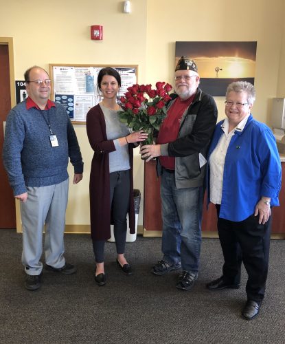 Members of the VFW 839 and Auxiliary honored volunteers at the Marshalltown VA Community-Based Out-patient Clinic for their service to veterans. Pictured from left to right are Jim Judkins, suicide prevention coordinator; Erin Suchy-Johnson, caregiver support coordinator; Roger Dirks ...