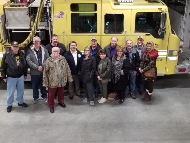 Members of the Marshalltown Evening Lions pose for a photo last Wednesday night with firefighter Jacob Moore, who along with police officer Rick Bellile, gave the club a tour of the new fire and police station facilities. The Marshalltown Evening Lions, who are most often seen popping corn on ...