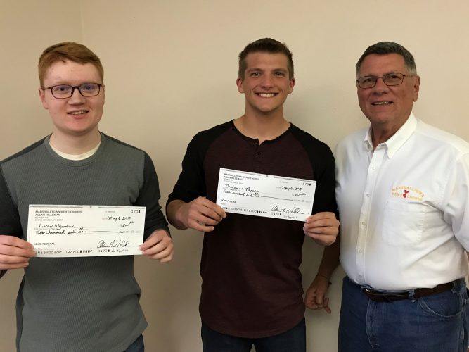 Lucas Wymore, a 2019 MHS grad and Benjamin Paper, a 2019 BCLUW grad, were each chosen to receive a $500 Marshalltown Men’s Chorus Music Scholarship this spring. Wymore is the son of Marty and Lisa Wymore, of Marshalltown and Paper is the son of Jason and Valerie Paper, of Conrad.