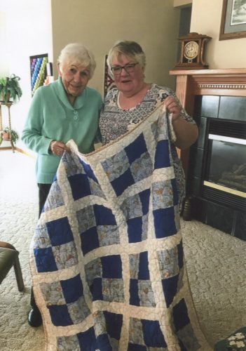 CONRAD — On behalf of the Conrad American Legion Auxiliary, Unit 681, Laura Wanken presented Rose Shine with a quilt on April 24 for her dedication of service. Shine has been a member of the Conrad American Legion Auxiliary for 48 years.