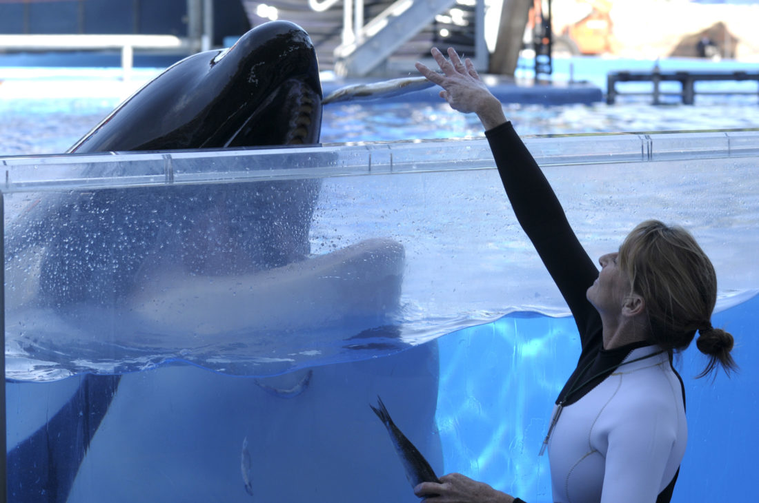 AP PHOTO In a March 7, 2011 photo, Kelly Flaherty Clark, right, director of animal training at SeaWorld Orlando, works with killer whale Tilikum during a training session at the theme park's Shamu Stadium in Orlando, Fla. Tilikum, an orca that killed a trainer at SeaWorld Orlando in 2010, has died. According to SeaWorld, the whale died Dec. 30.
