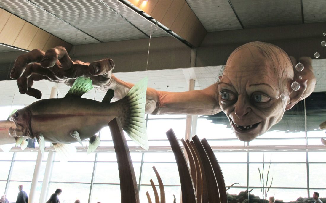 FILE - In this Nov. 24, 2012, file photo, a giant sculpture of Gollum, a character from "The Hobbit," is displayed in the Wellington Airport. Amazon announced Wednesday, Sept. 18, 2019, it will film its upcoming television series "The Lord of the Rings" in New Zealand, marking a return of the orcs, elves and hobbits to the country they became synonymous with over the course of six movies directed by Peter Jackson. (AP Photo/Nick Perry,File)