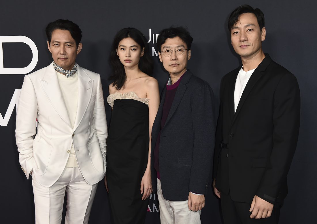 ap photo From left, Lee Jung-jae, Jung Hoyeon, Hwang Dong-hyuk and Park Hae Soo arrive at a red carpet event for “Squid Game” on Monday, at NeueHouse Hollywood in Los Angeles.