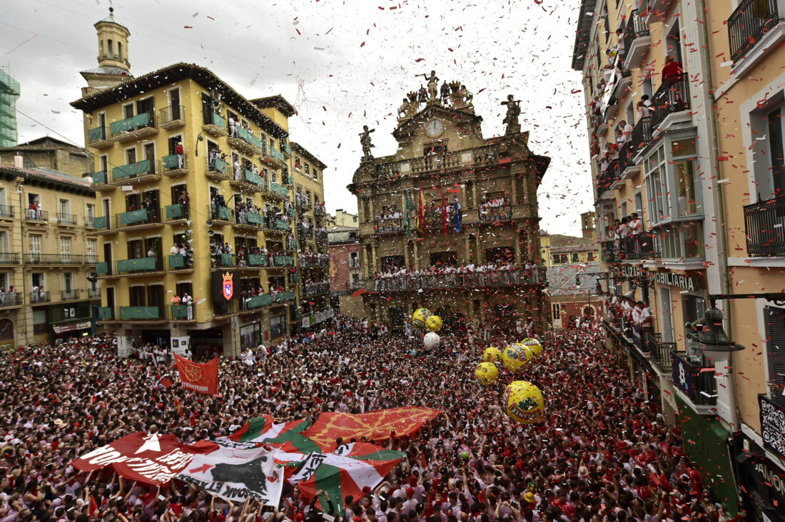 ap photo Revelers fill the town hall square waiting for the launch of the ‘Chupinazo’ rocket, to mark the official opening of the 2022 San Fermin fiestas in Pamplona, Spain, Wednesday. The blast of a traditional firework opens Wednesday nine days of uninterrupted partying in Pamplona’s famed running-of-the-bulls festival which was suspended for the past two years because of the coronavirus pandemic.
