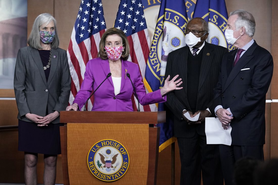 ap photo Speaker of the House Nancy Pelosi, D-Calif., holds a news conference ahead of the vote on the Democrat’s $1.9 trillion COVID-19 relief bill, at the Capitol in Washington on Tuesday.