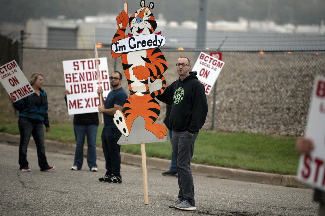 ap photo First shift worker Travis Huffman joins other BCTGM Local 3G union members in a strike against Kellogg Co., Tuesday, outside the Kellogg plant on Porter Street in Battle Creek, Mich. Workers in Battle Creek, Lancaster, Memphis and Omaha walked out at 1 a.m. Tuesday,, demanding livable wages and better benefits.