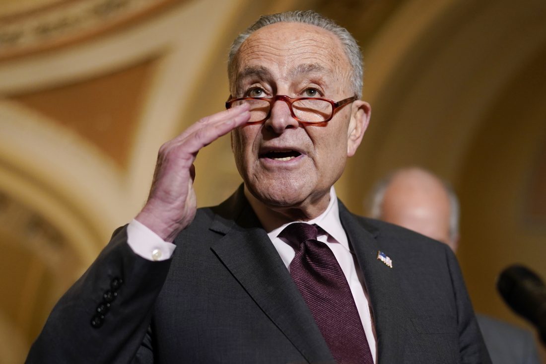 ap photo Senate Majority Leader Chuck Schumer of N.Y., speaks during a news conference after the weekly Democratic policy luncheon on Capitol Hill in Washington, Tuesday.