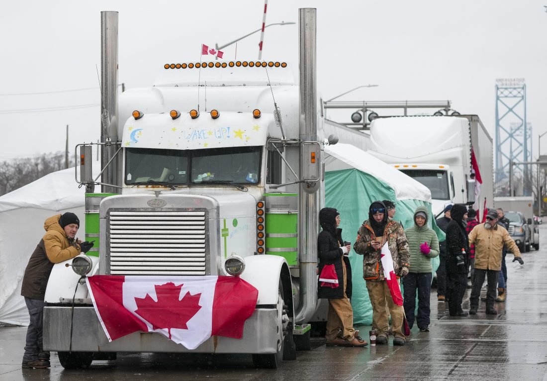 ap photo Truckers and supporters block the access leading from the Ambassador Bridge, linking Detroit and Windsor, as truckers and their supporters continue to protest against COVID-19 vaccine mandates and restrictions, in Windsor, Ontario, Friday.