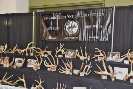 In today’s photograph from last year’s Iowa Deer Classic show held in Des Moines, the Shed Hunters Club always has a remarkable display board exhibit of antler singles or pairs. Table after table has antlers to view and a brief write-up of the who, what and where of that collector. Each antler single or set is a record of large male deer that grew them, lived through all archery and gun seasons and is still out there somewhere ready to grow a new antler set the following year.