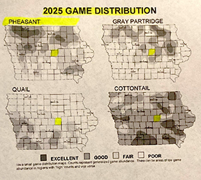 Even in northeast Iowa, route numbers are the highest since 1998, and in other areas of Iowa, good increases can be found. A close look at the index maps for upland game will show areas of good, fair or poor numbers. The changes in distribution is largely a function of habitat types in a particular region, the amount of spring rains received, and last winter’s snow cover.