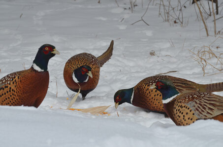 - PHOTOS BY GARRY BRANDENBURG — There are no shortages of Mother Nature’s wonders. We humans just need to learn how to look. If we look carefully enough, all kinds of examples avail themselves to our senses. Locally, the recent big snow storm dropped 10 inches of flaky white moisture particles we call snowflakes. Never mind it is just water in a crystalline form. If someone else has to shovel it away from sidewalks and roadways, that is okay. If you have to do it, well — not so much. But if one braves the winter season to hide out in a box photo blind, pheasants and other resident song birds may be drawn to eat at an ear of corn. Cameras click away to record another winter instant of time. These wildlife species know how to adapt. My other image is of a bronze statue deer. It is located at Springfield, Mo. at the Bass Pro Shop/Wonders of Wildlife Museum. This deer replica was built at four times life size by Dick Idol. Iowa’s gun deer season number one begins this weekend. Perhaps in a few places within the Hawkeye State, a lucky hunter may connect with a big Iowa buck. Who knows what fate and good luck may provide.