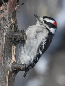 - PHOTOS BY GARRY BRANDENBURG — Woodpecker birds for us central Iowa folks to watch for still offers a good variety of species. For today’s outdoor adventure, I have picked just three — from the smallest to the largest, and one in the middle sized range. They are the small sparrow-sized Downy (Picoides pubescens), the Red-bellied (Melanerpes crolinus) in a mid-range size, and the largest crow-sized being a Pileated (Dryocopus pileatus). All of these are year-round residents. Woodpeckers tend to get that name moniker from the primary foods they eat, namely bugs from the bark of trees or acorns from oak trees. Their foods are much more diverse, still it remains that to gather some of these foods, they use their beaks to dig away woody material to expose the morsels they want to eat.