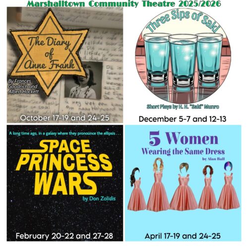 The Marshalltown Community Theatre’s 2025-26 season will consist of four diverse plays, sure to offer something for everyone, and all staged at the historic Miller Middle School Auditorium.