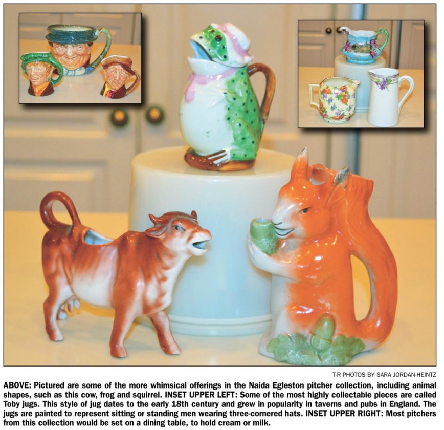 “Naida had a broad spectrum of pitchers, ranging from functional pieces to more whimsical ones, shaped like animals, and small ones that would be purely decorative,” Neven said. “The age of the pitchers range from the early 1900s to the present, made from glass, ceramic, porcelain and pottery.”