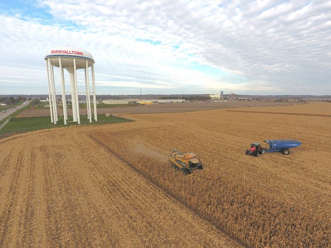 CONTRIBUTED PHOTO -A combine harvests corn in a Marshalltown area field.