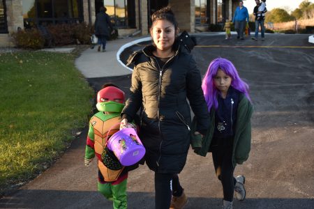 - Dario, Adriana and Tanya Aguilera of Marshalltown walk toward the trunk or treat line at the Journey Church on Olive Street on Thursday night.