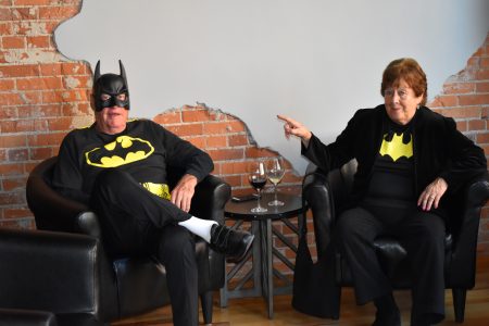 David Day and Harriet Parrott dressed as Batman, or at least put on a Batman shirt, for a Halloween celebration at Tannin on Thursday night.