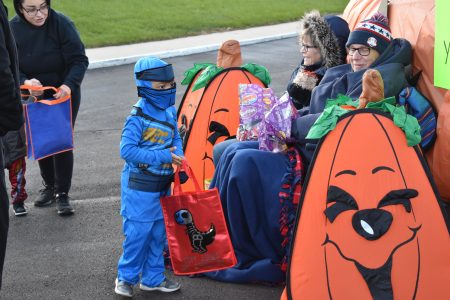 Ninja dressed True Lovejoy of Marshalltown gets some candy from Tony and Jane Giannetto with Journey Church on Thursday for the church’s Halloween trunk or treat event.