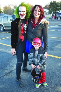 - T-R photos by Lana Bradstream Jesse Gale as the Joker, Angela Reisinger as Wonder Woman and Lincoln Barger, 4, as the Flash saved – or terrorized – the parking lot of the Marshalltown High School with their DC character costumes.