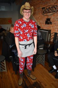 Tannin employee Tarin Stern decked himself out in pajamas and a cowboy hat for the Halloween party on Thursday night.