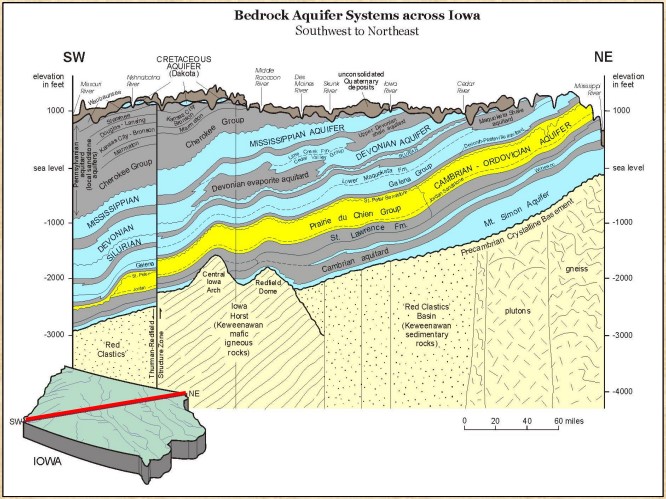 The Jordan Aquifer, shown in yellow, is a key well water source across the state. A Clayton sand mining operation wants to send water from its Jordan wells to dry western states by rail tankers.