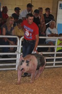 - CONTRIBUTED PHOTO Jake Goecke shows hogs during the 2016 Central Iowa Fair in Marshalltown. A lifelong interest in agriculture led him to become an auctioneer.