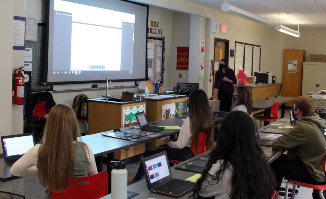 CONTRIBUTED PHOTO Marshalltown High School instructor Erica Malloy educates some socially-distanced and masked students in this September photo. Due to rising COVID-19 rates in Marshall County, the school district is moving forward with remote learning beginning Thursday.