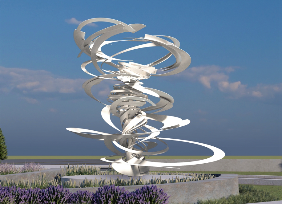 The piece, which will be immersed in white light at night, is an attempt to capture the movement, energy and power of the wind, Aycock said. For years, she has been fascinated with dust devils, water waves, smoke, tornadoes and other expressions of air movement.