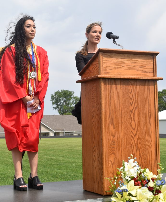 “Today’s graduates have the unique distinction of having successfully navigated high school while also dealing with the effects of an EF-3 tornado and derecho in addition to a worldwide pandemic that has been problematic for the past few years,” he said before referencing the windy conditions. “Today’s weather is kind of fitting… I know the diploma you’re receiving today represents years of hard work even though you’ve been facing challenges and opportunities to learn differently.”