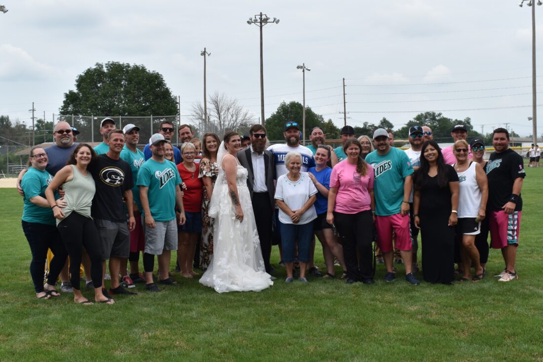 Shelby Breault and Kip Hilderbrand surprised everyone in attendance for a fundraising event when they tied the knot in an impromptu wedding ceremony held at the Sixth Street Softball Diamond on Saturday evening. After visiting the doctor last November about a tightness in his chest, Hilderbrand has been battling a rare and aggressive form of cancer called Angiosarcoma. The community has rallied around Hilderbrand since his diagnosis because he has always given so much to those in need. The fundraiser was hosted on Saturday to help Hilderbrand with medical costs, and the couple wanted to share the moment with everyone who has helped them through the adverse situation.
