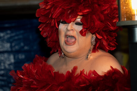 The show at Dave & Sally’s was representative of all of those things. Feathers from frocks floated through the air as the queens stunned in thick platform boots, feathered headdresses, onesies with neon rainbow winged shoulder pads, pink and purple wings. They worked the stage, danced and walked through an electrified crowd to Lady Gaga, Ariana Grande, Rihanna and Whitney Houston.
