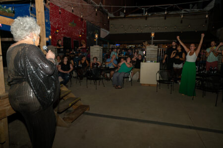In addition to lip syncing, dancing and working the crowd, Rosenberg organized the event and acted as emcee. She told stories that had the crowd bursting out in laughter, which often resulted in someone from the crowd shouting out to her and her responding with a quip that got the audience going even more.
