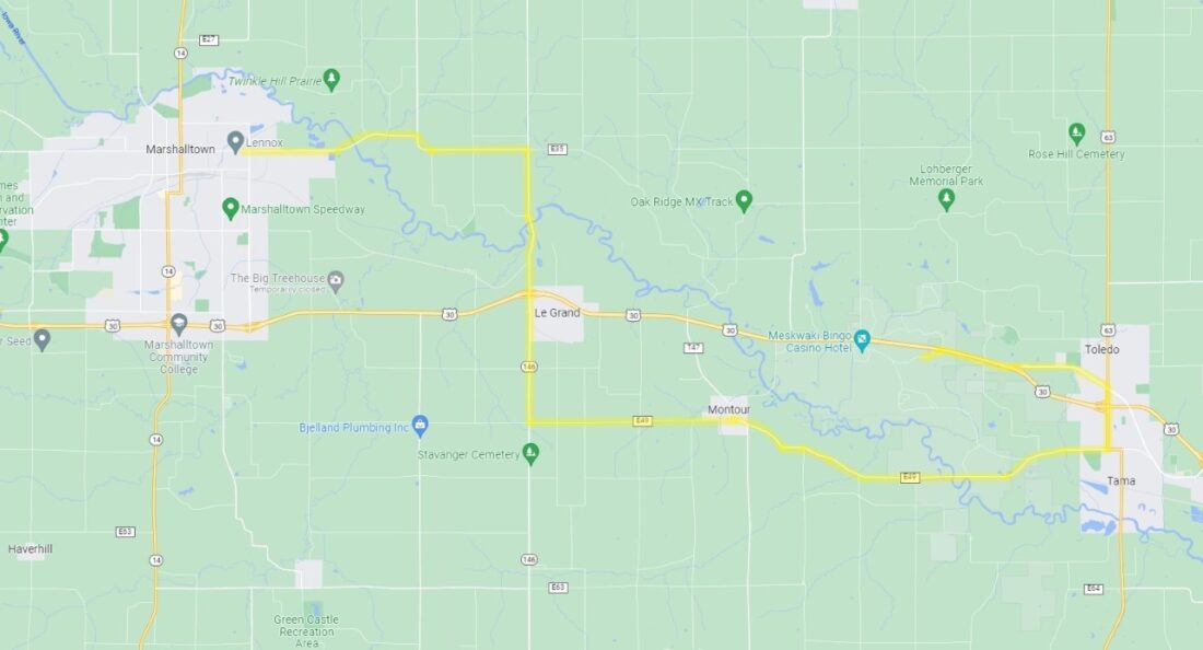 On Tuesday at 2:00 p.m., a group of motorcycles will escort the semi truck leaving from the Iowa Veterans Home in Marshalltown and traveling east on Main Street. It will leave Marshalltown on East Main Street Road and continue through Le Grand, Montour, Tama, Toledo and the Meskwaki Settlement. A detailed explanation of the route and a map is pictured to the right.