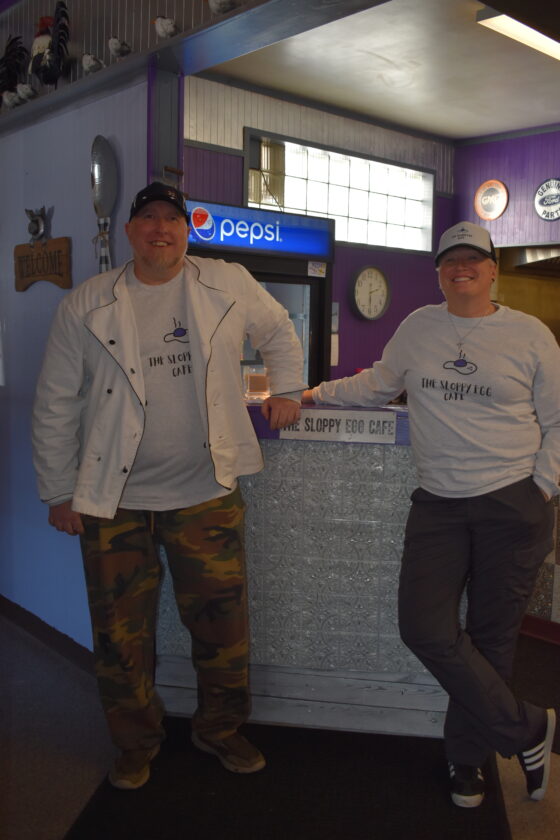 “We started talking. I said I have this idea for a food truck, it’s called the Sloppy Egg and it’s bright purple with an egg on it,” Carrie Merry said, mentioning how she wanted to sell her famous sloppy egg sandwiches in the truck. “Then he’s like, ‘But I want a restaurant.’ So we kind of did our own thing, and then this popped up.”