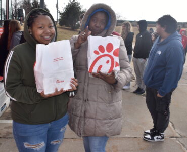 Ciara Hilson, left, and Crystal Walker, right, were all smiles after picking up their orders.