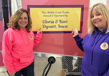 CONTRIBUTED PHOTO — Gloria Hadachek, left, and Kori Hatch pictured recently with their newly-purchased Lucky Wife Wine Slushies event trailer. The Dysart duo is the East Central Region franchisee for the mobile wine slushie business which began in Clear Lake in 2022.