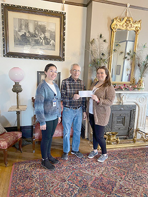 Staff from Home Federal Savings Bank of Marshalltown recently donated $500 to the HIstorical Society of Marshall County. From left are Jeni Chavarria, consumer banking specialist, Dan Brandt, president of HSMC and Hannah Hedum, assistant branch manager/lead teller and HSMC board member. The presentation was made at the stately Mowry-Irvine Mansion in Marshalltown.