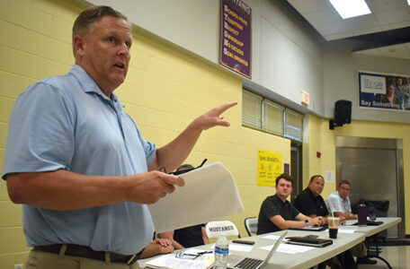 “No matter where you’re standing on this issue, this is the first of four meetings. The intent is to share information, and where I stand is, at the end of the day, whether we agree on what the next step is or not, the reality is we’re all Mustangs,” he said. “You’re in this district, whether you have kids in the district or not or you’re an alumni of the district or not, we’re all Mustangs. So we have to have these difficult conversations because I think… the reason that you’re here is because you care about East Marshall.”