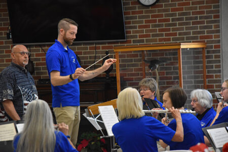 - Marshalltown Municipal Band Director Brad Umthun leads musicians in the “Battle Hymn of the Republic” during the Memorial Day ceremony at the Iowa Veterans Home. The band also played the national anthem and military branch songs as a salute to American soldiers.