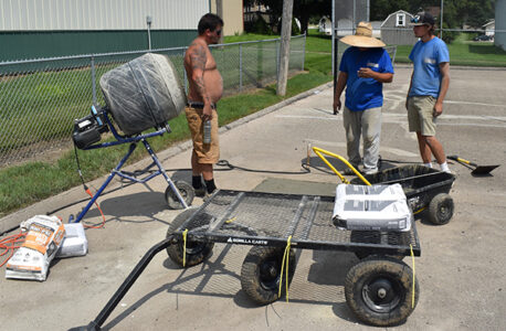 - From left to right, Baylee Waldo, Noah Slifer and Braydn Carroll of Fencing Solutions work at the future Beaman Pickleball Court near the Mid-Iowa Cooperative elevator on Friday afternoon.
