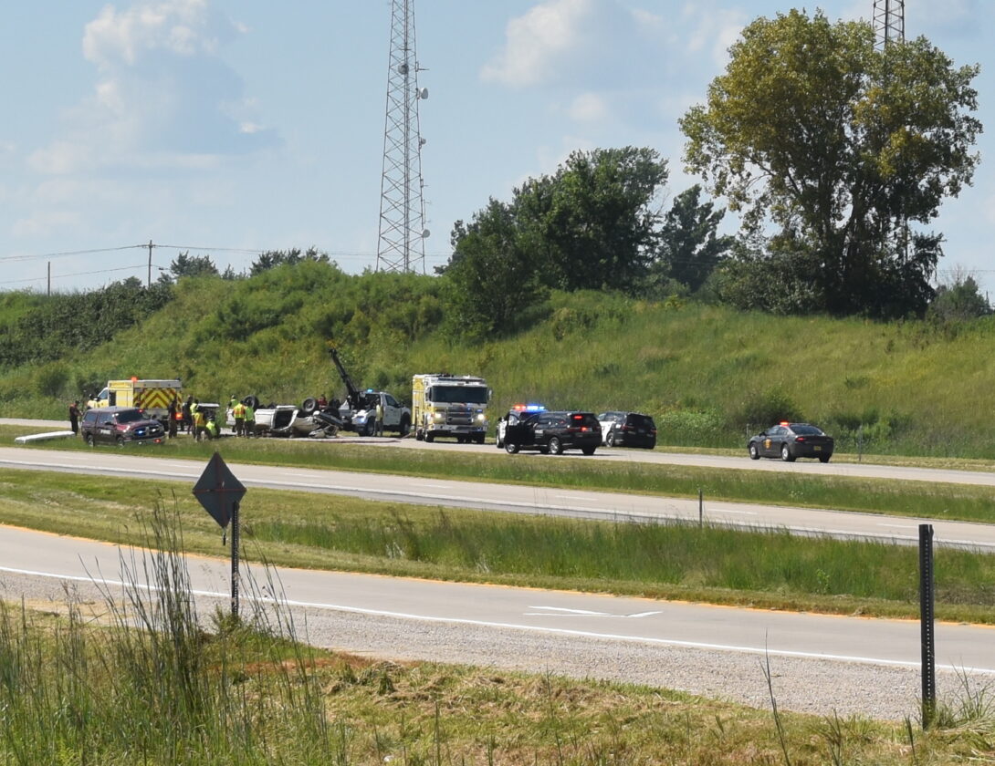 T-R PHOTO BY ROBERT MAHARRY — The westbound lanes of Highway 30 near the 18th Avenue ramp were closed for an extended period of time on Wednesday due to a rollover crash. The Marshalltown Police Department received assistance from the Marshalltown Fire Department, Marshall County Sheriff’s Office and the Iowa State Patrol.
