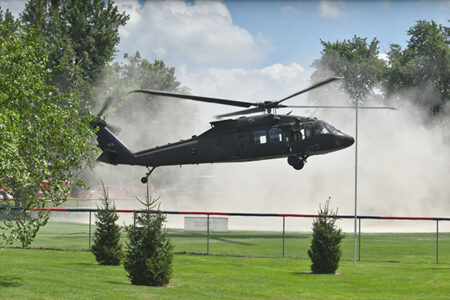 The Wall That Heals, a ¾ scale replica of the Vietnam Veterans Memorial in Washington, D.C., is headed to Nevada, Iowa from Aug. 7-10, and it fittingly made a stop at the Iowa Veterans Home in Marshalltown along the way on Tuesday A large group of patriotic riders accompanied the wall as well as a Black Hawk helicopter that landed on Valor Field and then ascended just before 2 p.m. From Marshalltown, the exhibit moved west to State Center and Colo in preparation for its arrival in Nevada.