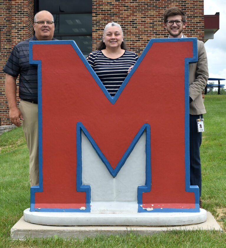 T-R PHOTO BY ROBERT MAHARRY — From left to right, new Marshalltown Community School District Buildings and Grounds Director Todd Carl, Director of Student Services Anel Garza and Director of Special Education Benjamin LaConner pose for a photo outside of the administration building on Monday afternoon. Carl is a Marshalltown native and MHS graduate who spent 34 years as the plant manager at JBS, while Garza has spent almost all of her educational career with the MCSD and served as the principal at Woodbury Elementary School for the last 12 years. LaConner originally hails from Minnesota and most recently served as the principal at Samuelson Elementary School in Des Moines.