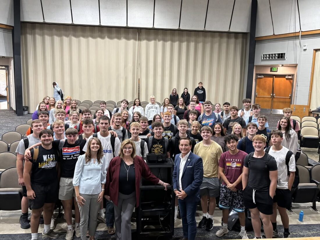 On Thursday, Aug. 28, Iowa Secretary of State Paul Pate presented to the four-time Carrie Chapman Catt Award winners, West Marshall High School, in celebration of their participation in the 2025-2026 Catt Award program. This is the school’s fifth year participating in the program.